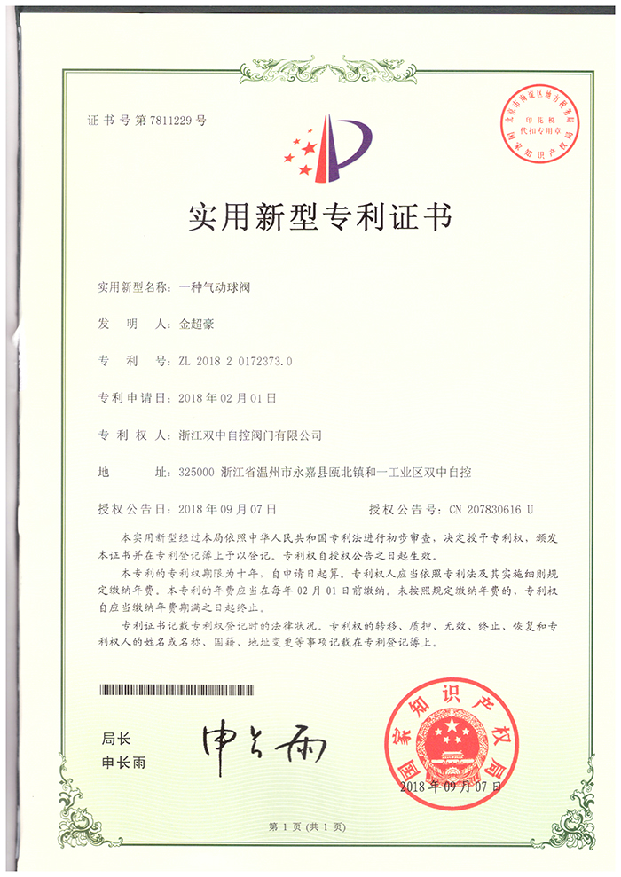 產品中心 企業榮譽>> 專利證書球閥 返回首頁